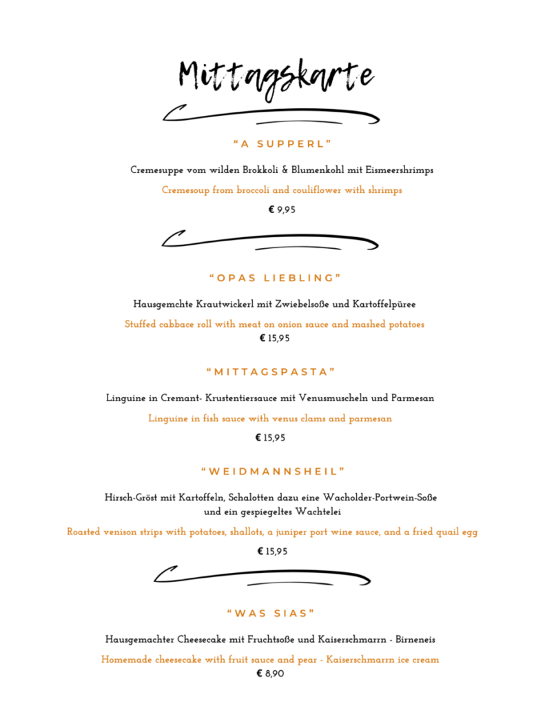 Alle Preise enthalten die gesetzliche Mehrwertsteuer und Bedienungsgeld