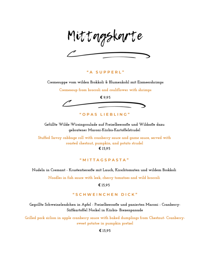 Bodenständig, Regional und Hausgemacht mit modernen Einflüssen ist unser Küchenstil darauf legen wir viel Wert und somit passen wir unsere Karte immer den Jahreszeiten an.